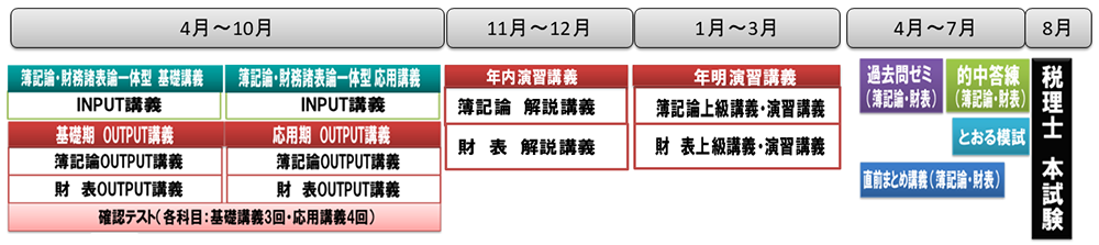 標準コースのカリキュラムに上級コースの演習を加え、インプットからアウトプット、試験対策まで十分な内容のパーフェクトコースです。インプットを早めに終わらせ、問題演習を多く行うことで実力を蓄えます。基礎から直前対策まで一貫して行えます。